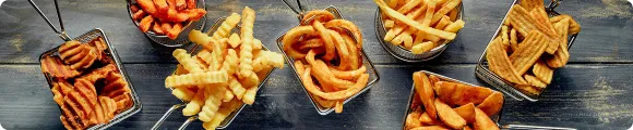Wir bieten eine riesige Auswahl an Pommes Frites, Wedges, Kroketten und anderen Kartoffelspezialitäten aus eigener Produktion und von den größten Produzenten der Welt.